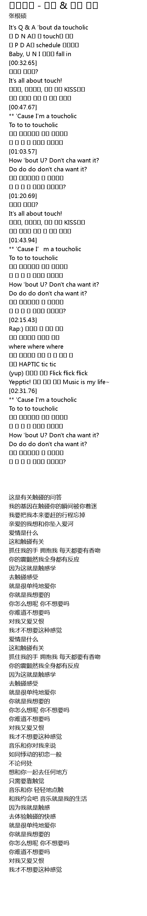 | [00:19.96] | 난 D N A가 다 touch에 홀린 |