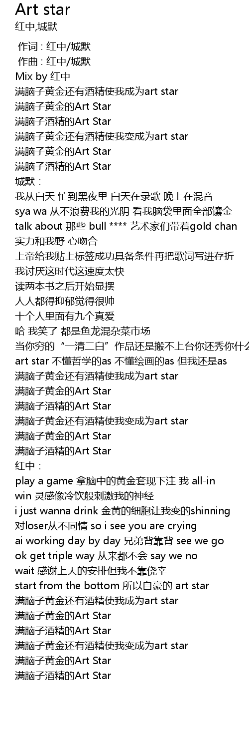 | [00:14.61] | 满脑子黄金还有酒精使我成为art star |