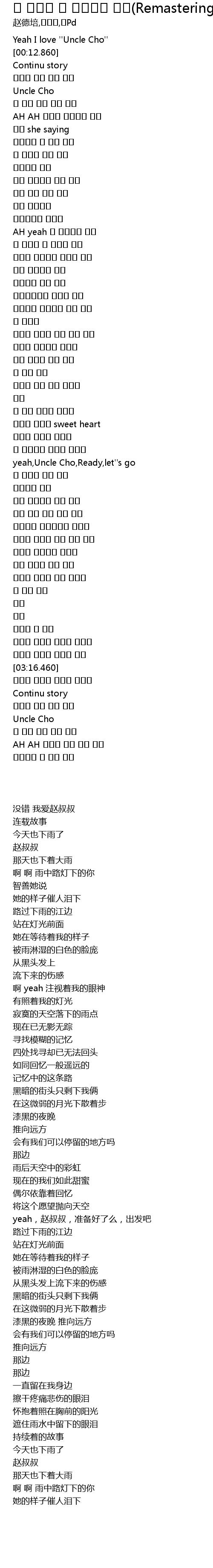 | [00:03.320] | Yeah I love '' Uncle Cho'' |