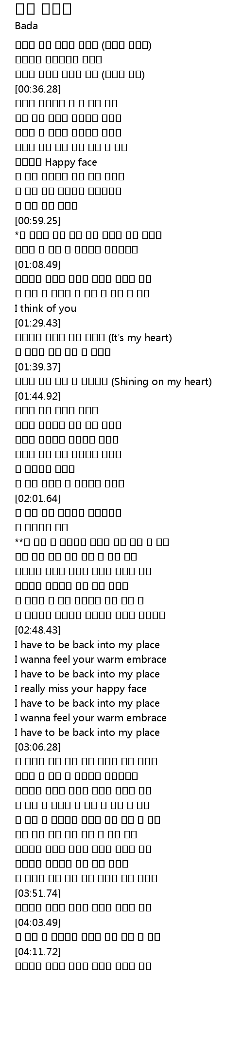 | [01:40.76] | 이제는 내방 아닌 내 마음에서 (Shining on my heart) |