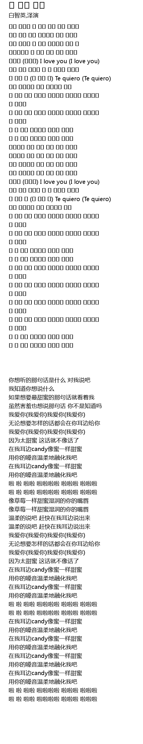 [02:51.460] 내 귀에 캔디 꿀처럼 달콤했니 목소리로 부드럽게 날 녹여줘