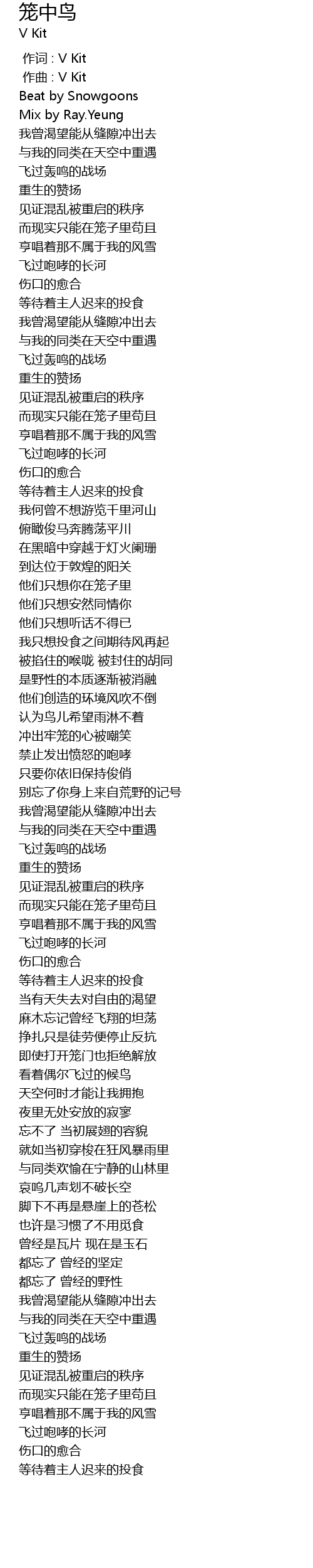| [02:47.641] | 而现实只能在笼子里苟且 |