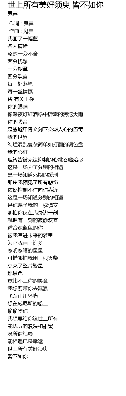 | [03:54.13] | shì shàng suǒ yǒu měi hǎo xū yú |