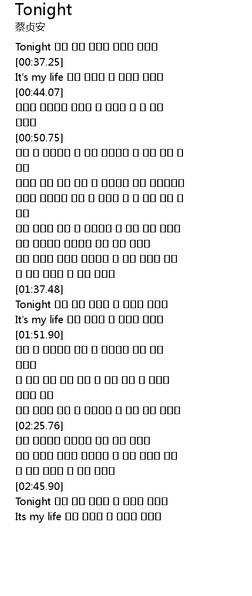[01:45.99] It's my life 나를 속였어 날 아프게 하지마