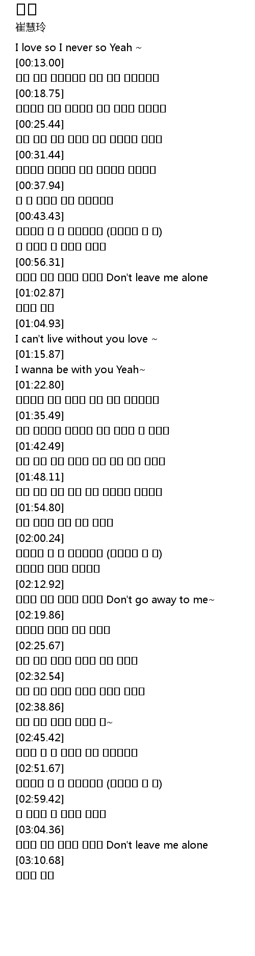 | [03:05.73] | 어제의 우릴 기억해 이렇게 Don't leave me alone |
