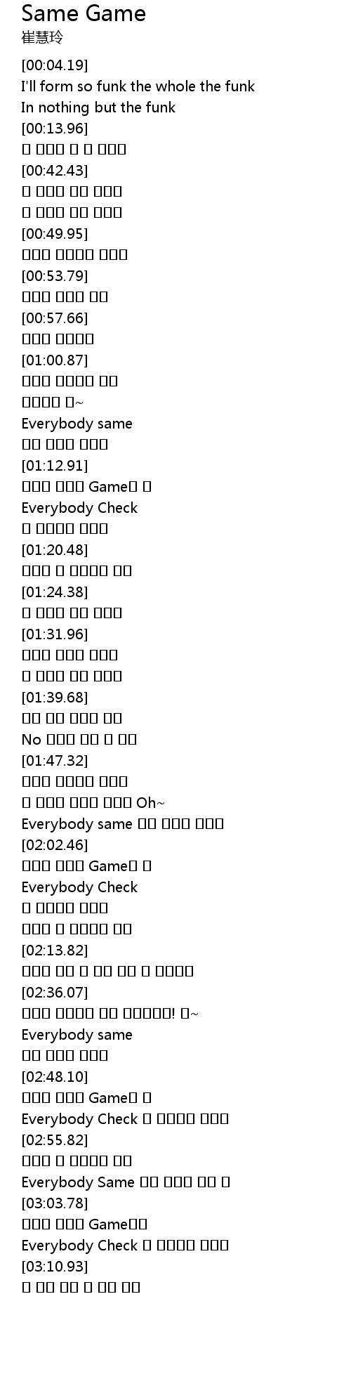 | [02:59.78] | Everybody Same 너도 똑같은 사랑 뿐 |