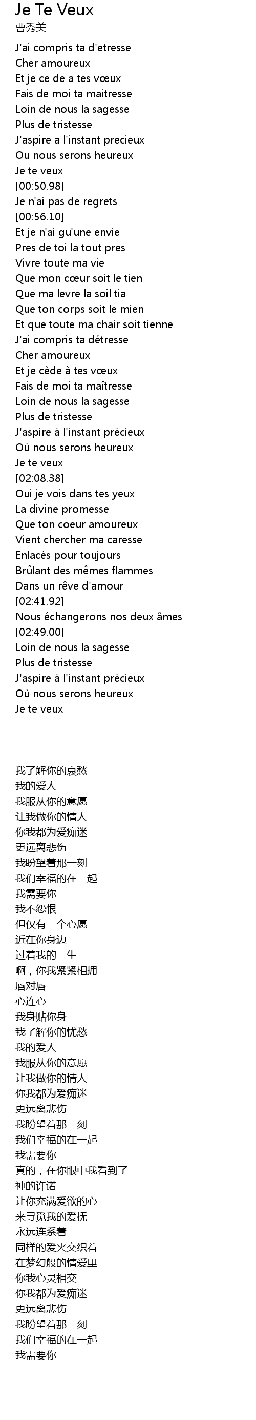 | [03:17.88] | J' aspire a l' instant pre cieux |