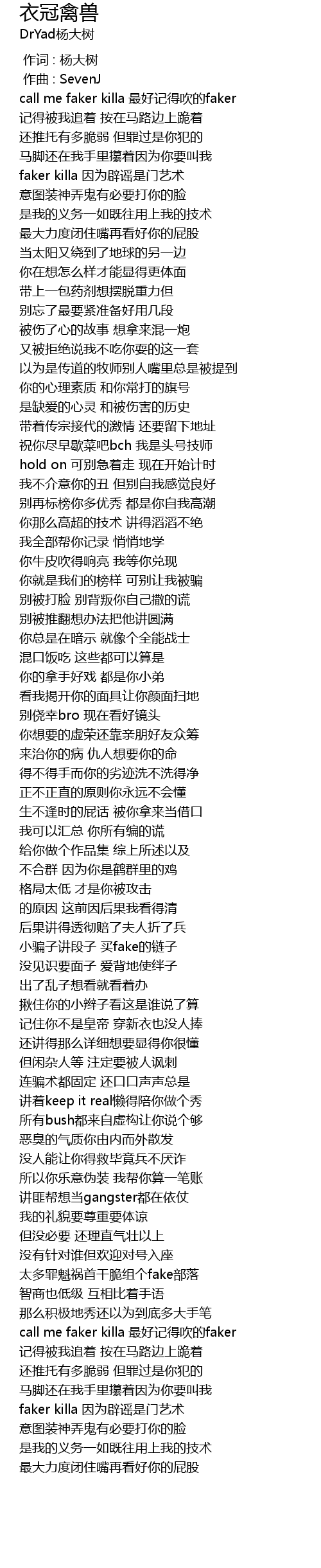 | [00:02.303] | call me faker killa 最好记得吹的faker |