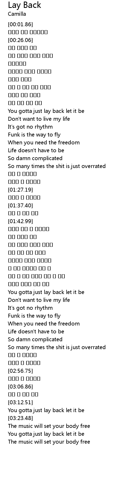 | [03:30.31] | You gotta just lay back let it be |
