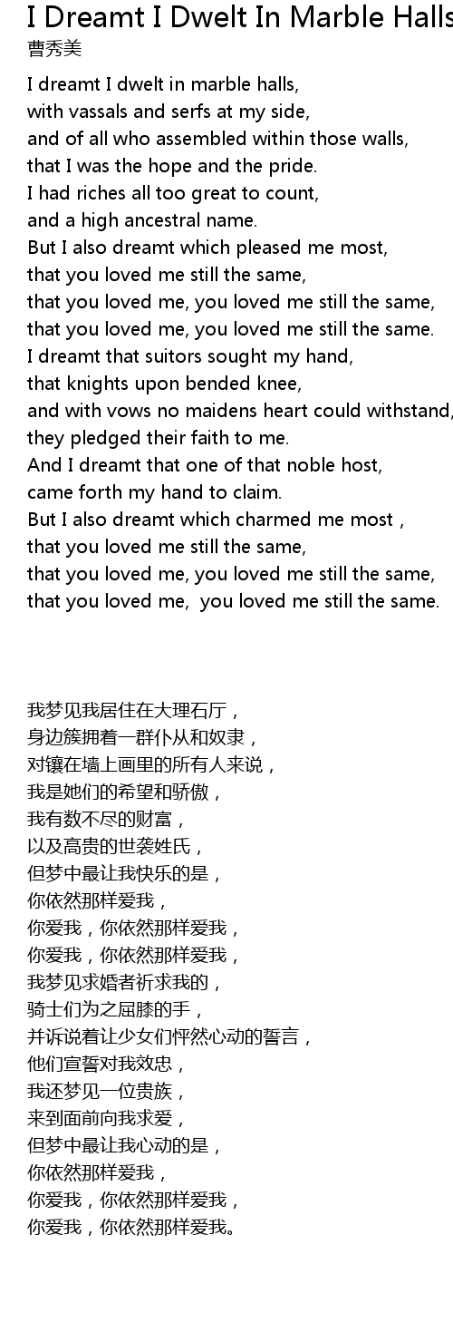 | [00:18.000] | I dreamt I dwelt in marble halls, |