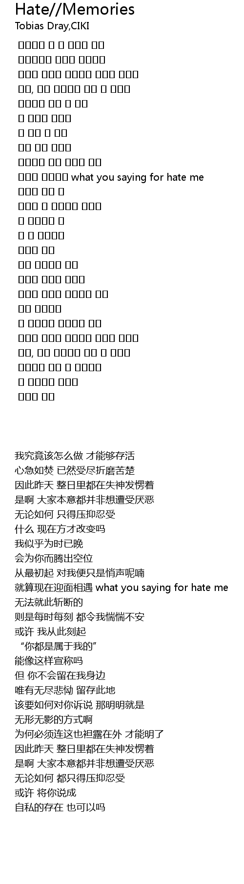 | [00:37.984] | 이제는 마주쳐도 what you saying for hate me |