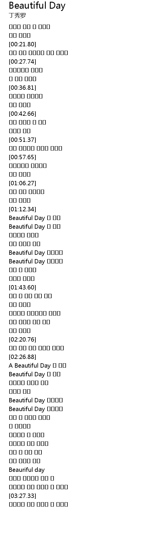 | [01:18.08] | Beautiful Day |