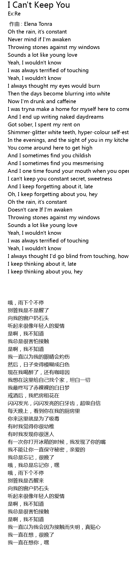 | [02:13.33] | I can' t keep you constant secret, sweetness |