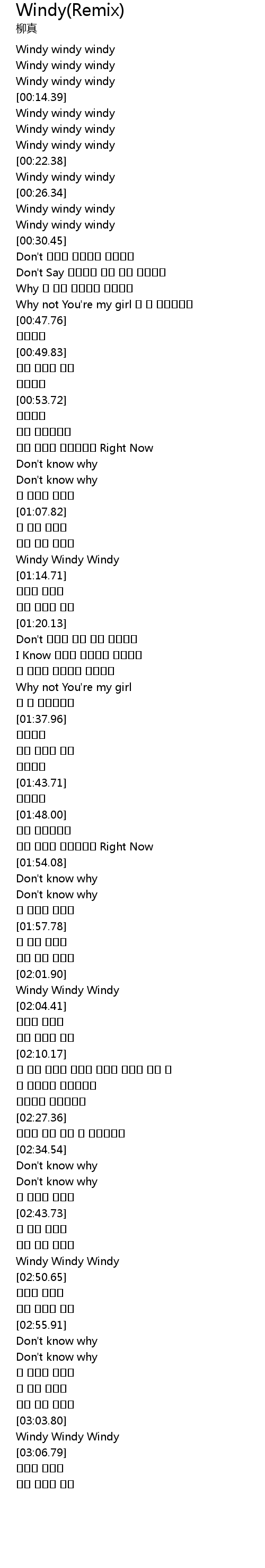| [03:04.33] | Windy Windy Windy |