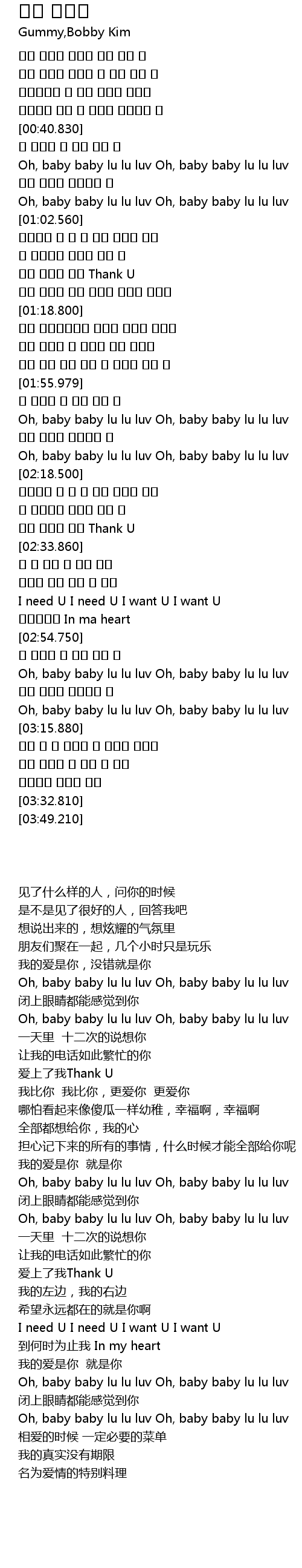 | [02:28.860] | 나를 사랑해 줘서 Thank U |