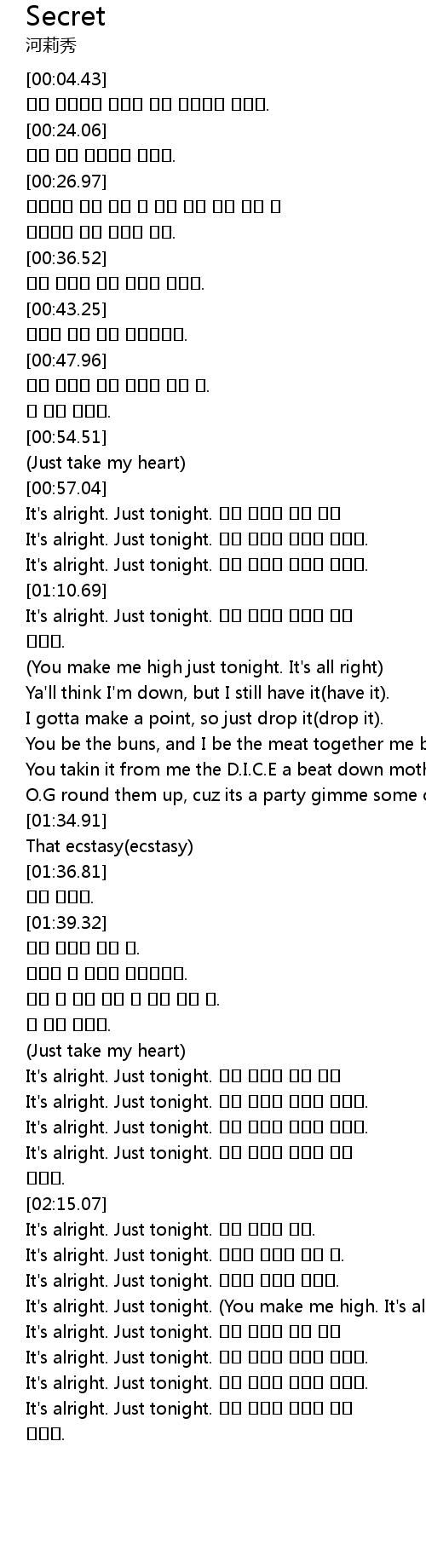 | [02:00.22] | It's alright. Just tonight. 우리 둘만의 비밀을 나눌까. |