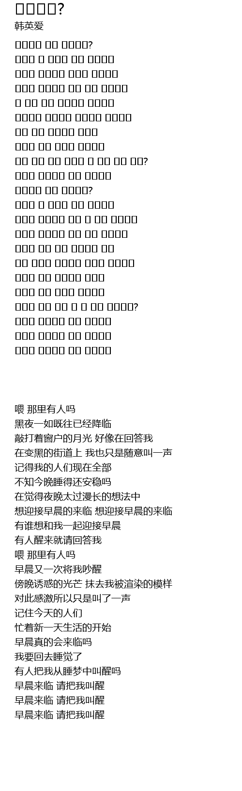잠자는 나를 깨워 줄 이 거기 누구없소? |