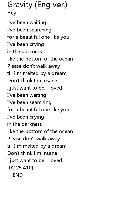 | [01:21.70] | I' ve been waiting |