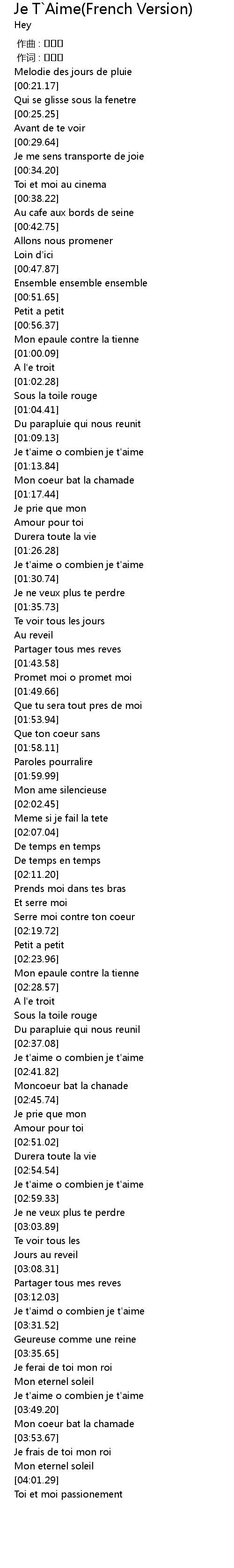 | [02:56.14] | Je t' aime o combien je t' aime |