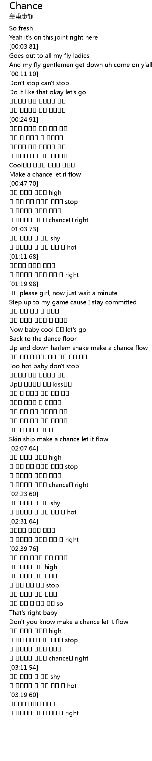 | [01:21.00] | 황보 please girl, now just wait a minute |