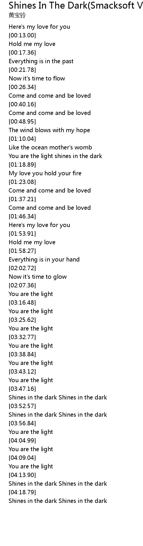 [04:15.09] Shines in the dark Shines in the dark
