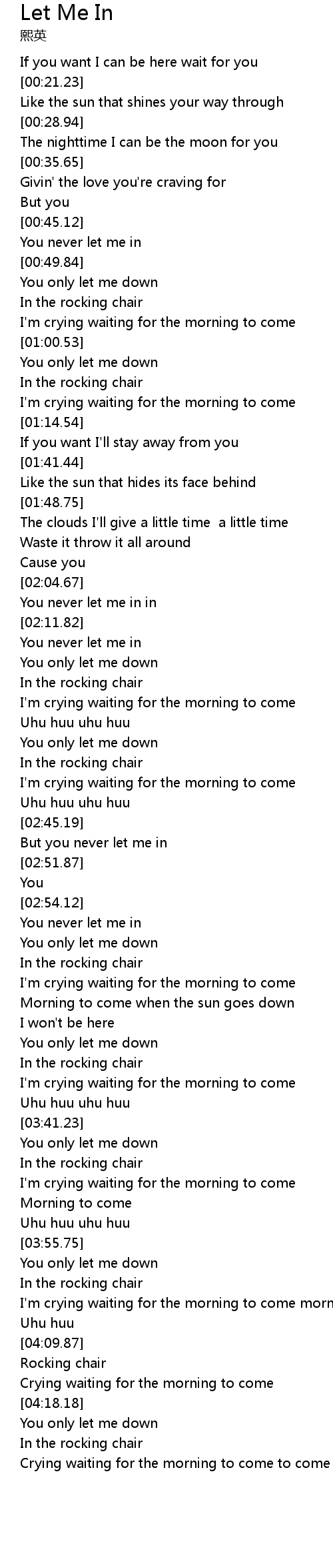 | [00:56.04] | I'm crying waiting for the morning to come |