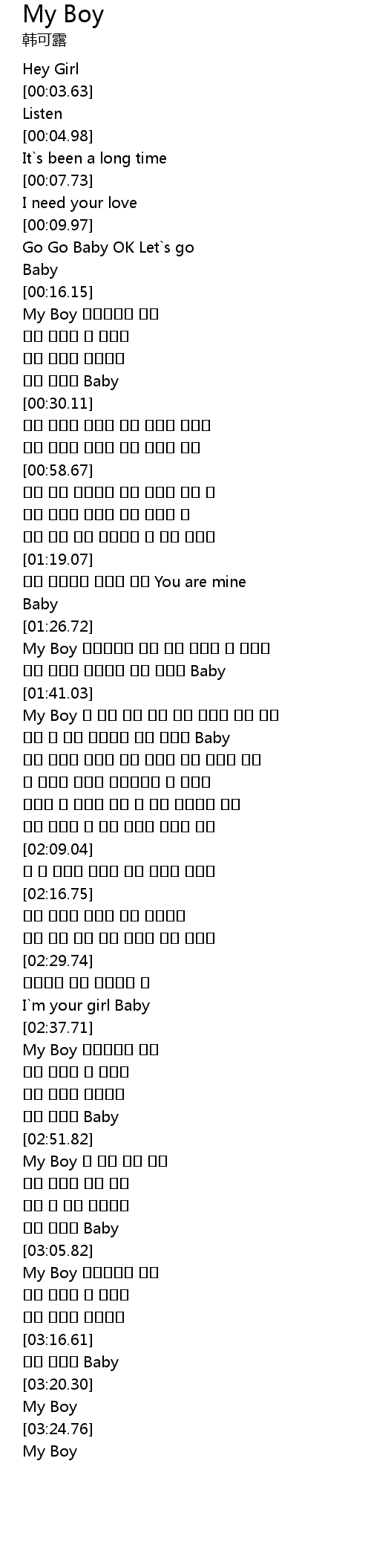 | [03:06.63] | My Boy 수줍어하지 말고 |