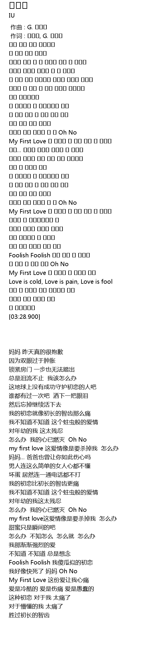 | [02:53.770] | Foolish Foolish 바보 같은 내 첫사랑 |
