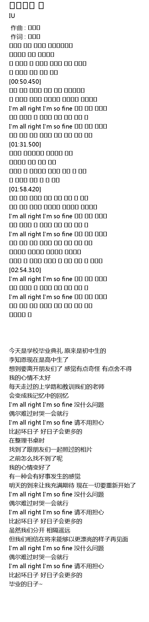 | [02:25.610] | I'm all right I'm so fine 아무 걱정 하지마 |