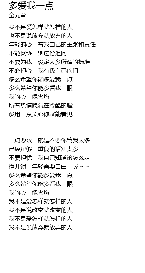 | duō me xī wàng nǐ néng duō ài wǒ yì diǎn | |