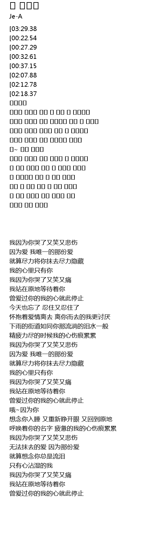 | [02:02.64][00:37.15] | 내 맘은 오직 너인데 |