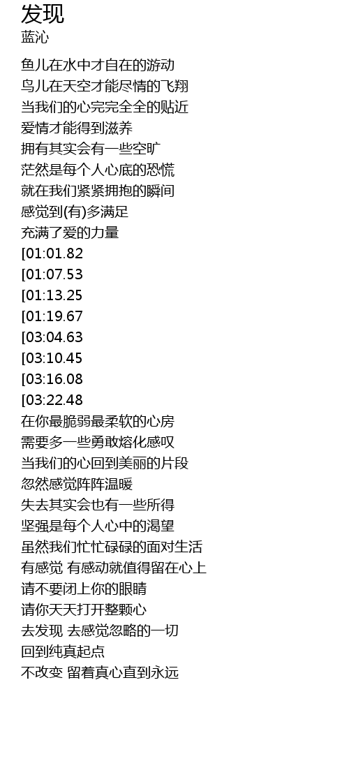 | [02:41.84][01:01.82] | zhi yao ni fa xian yong xin qu fa xian |