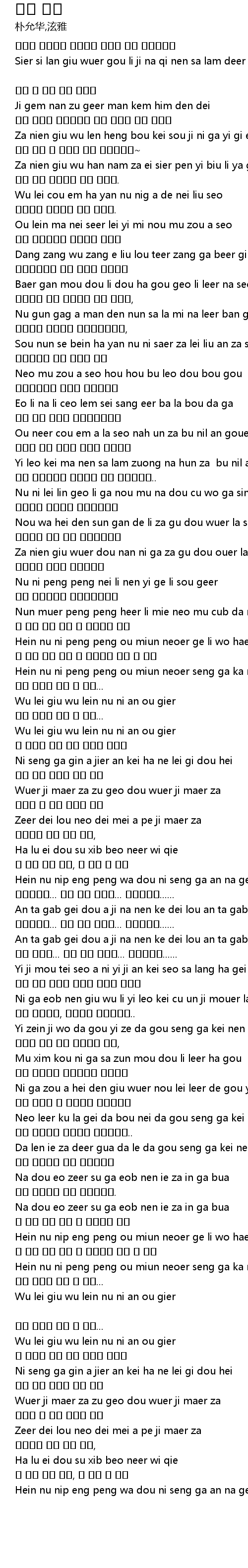 | Hein nu ni peng peng ou miun neoer ge li wo haer tein dei | |