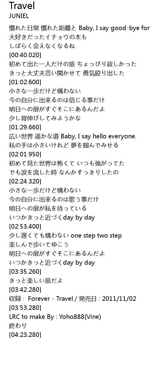 | [03:48.280] | 収録∶ Forever - Travel/発売日∶2011/11/02 |