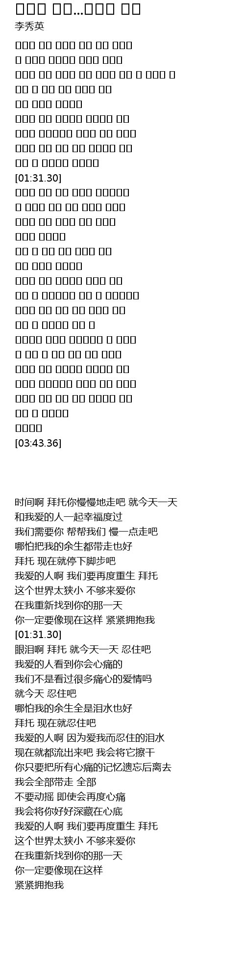 | [02:23.99] | 그대여 나를 사랑하며 참아온 눈물 |