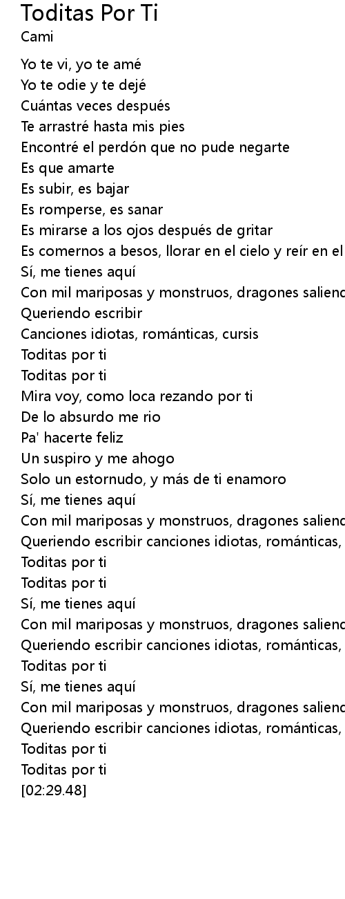 | [00:48.76] | Canciones idiotas, románticas, cursis |