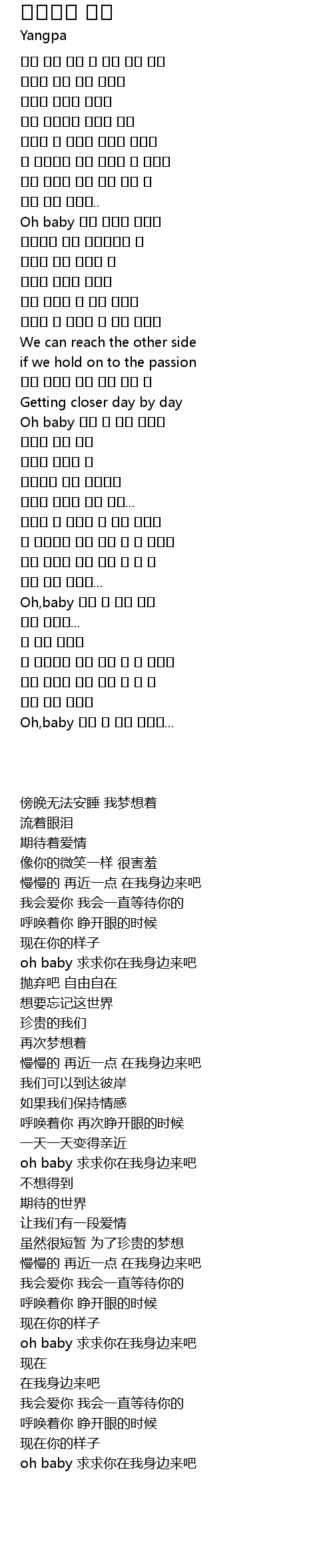 | [00:34.090] | 조금만 더 가까이 내곁에 있어줘 |