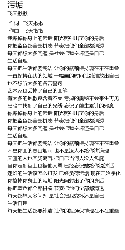 | [00:00.000] | 作词 : 飞天揪揪 |
