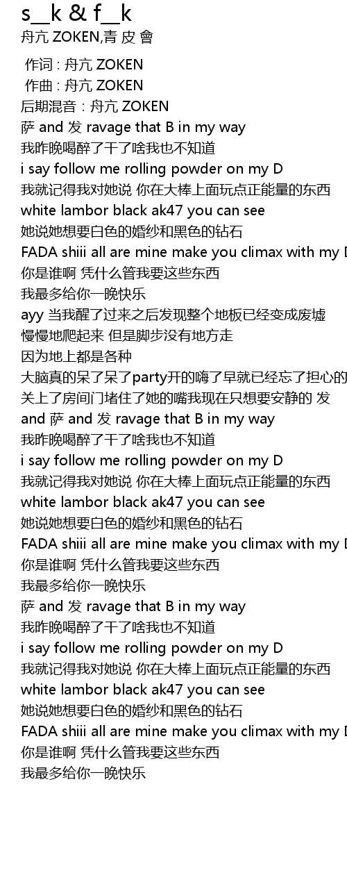 | [00:27.440] | FADA shiii all are mine make you climax with my D and |