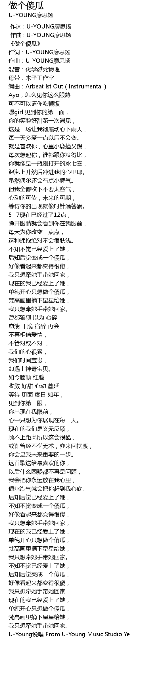 | [00:00.000] | 作词 : U-YOUNG廖思扬 |