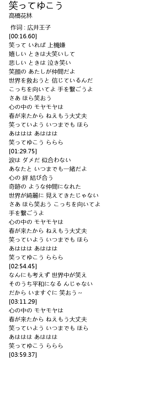 | [01:13.56] | 笑っていよう いつまでも ほら |