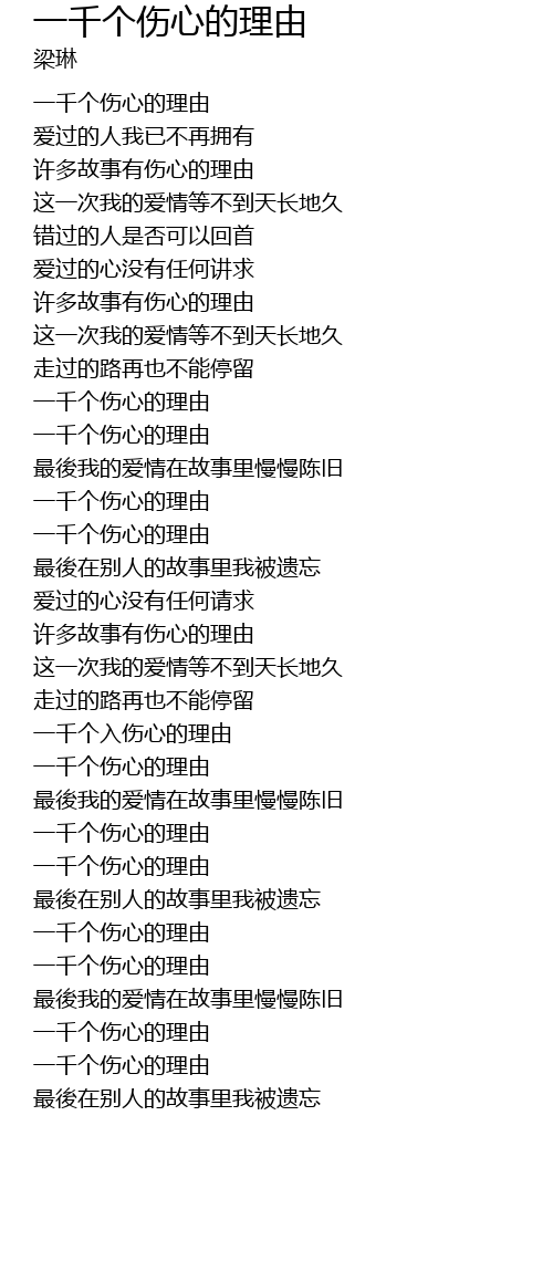 | [01:17.10] | yī qiān gè shāng xīn de lǐ yóu |