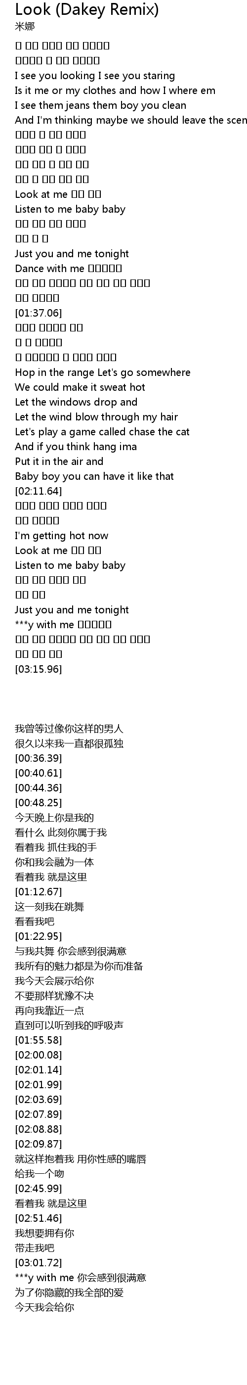 | [00:36.39] | I see you looking I see you staring |