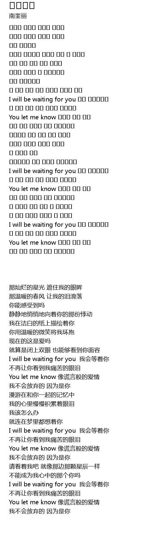 | [03:40.17] | I will be waiting for you 그댈 기다릴게요 |
