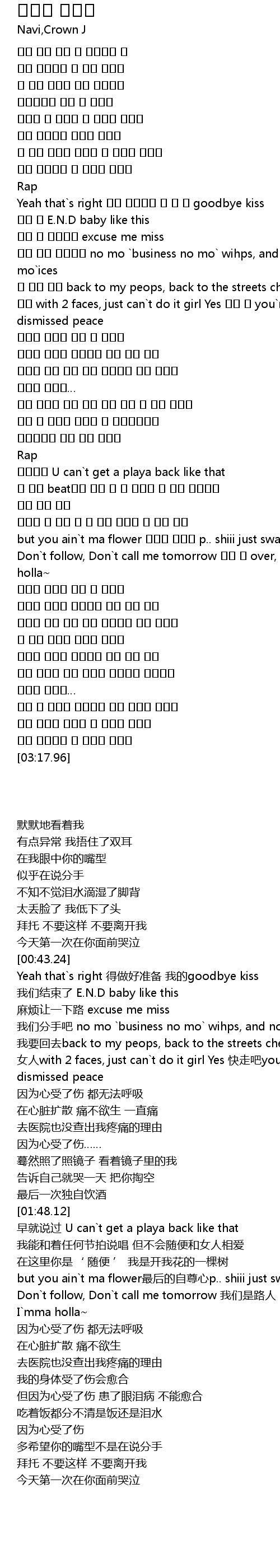 | [00:43.63] | Yeah that`s right 아마 준비해야 될 걸 내 goodbye kiss |