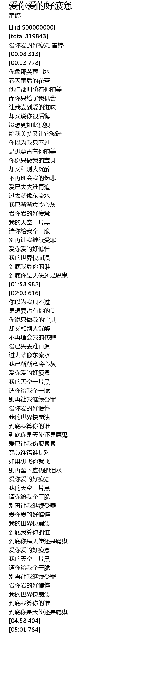 [00:05.328] 爱你爱的好疲惫 雷婷