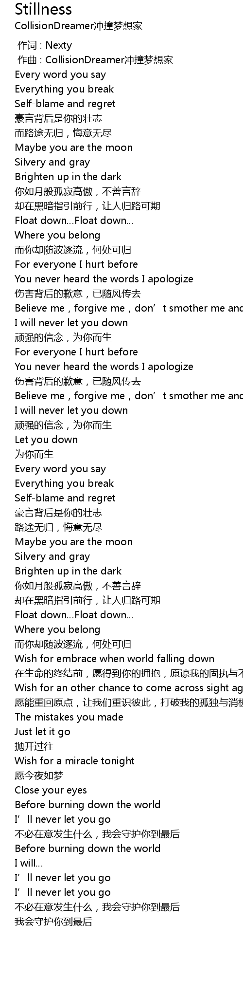 | [02:53.855] | zài shēng mìng de zhōng jié qián, yuàn dé dào nǐ de yōng bào, yuán liàng wǒ de gù zhí yǔ bù jī |