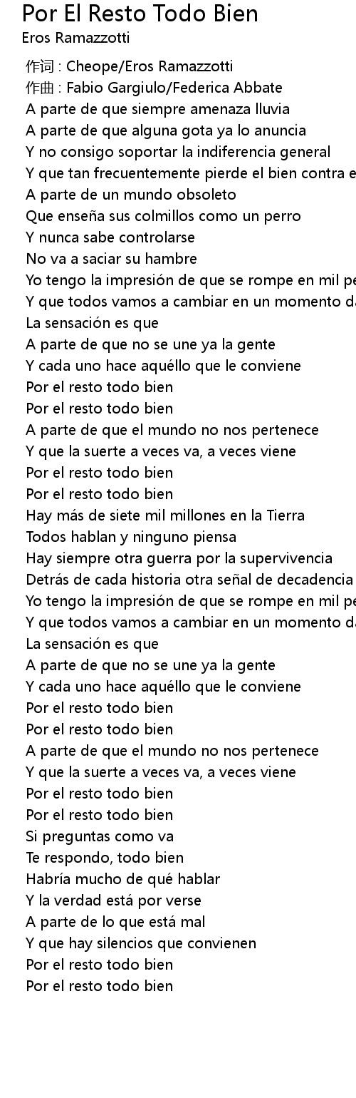 | [00:00.000] | 作词 : Cheope/Eros Ramazzotti |