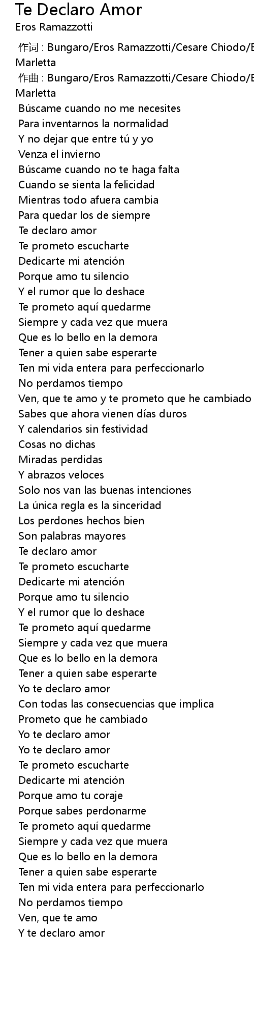 | [00:01.000] | zuo qu : Bungaro Eros Ramazzotti Cesare Chiodo Edwyn Roberts Stefano Marletta |