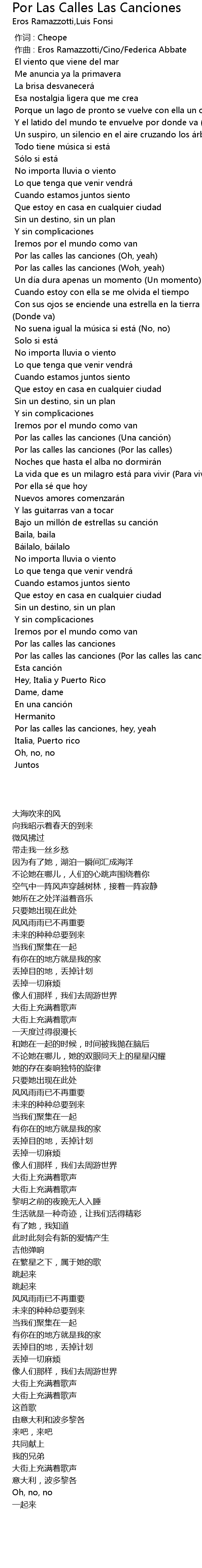 | [03:08.847] | Por las calles las canciones (Por las calles las canciones) |
